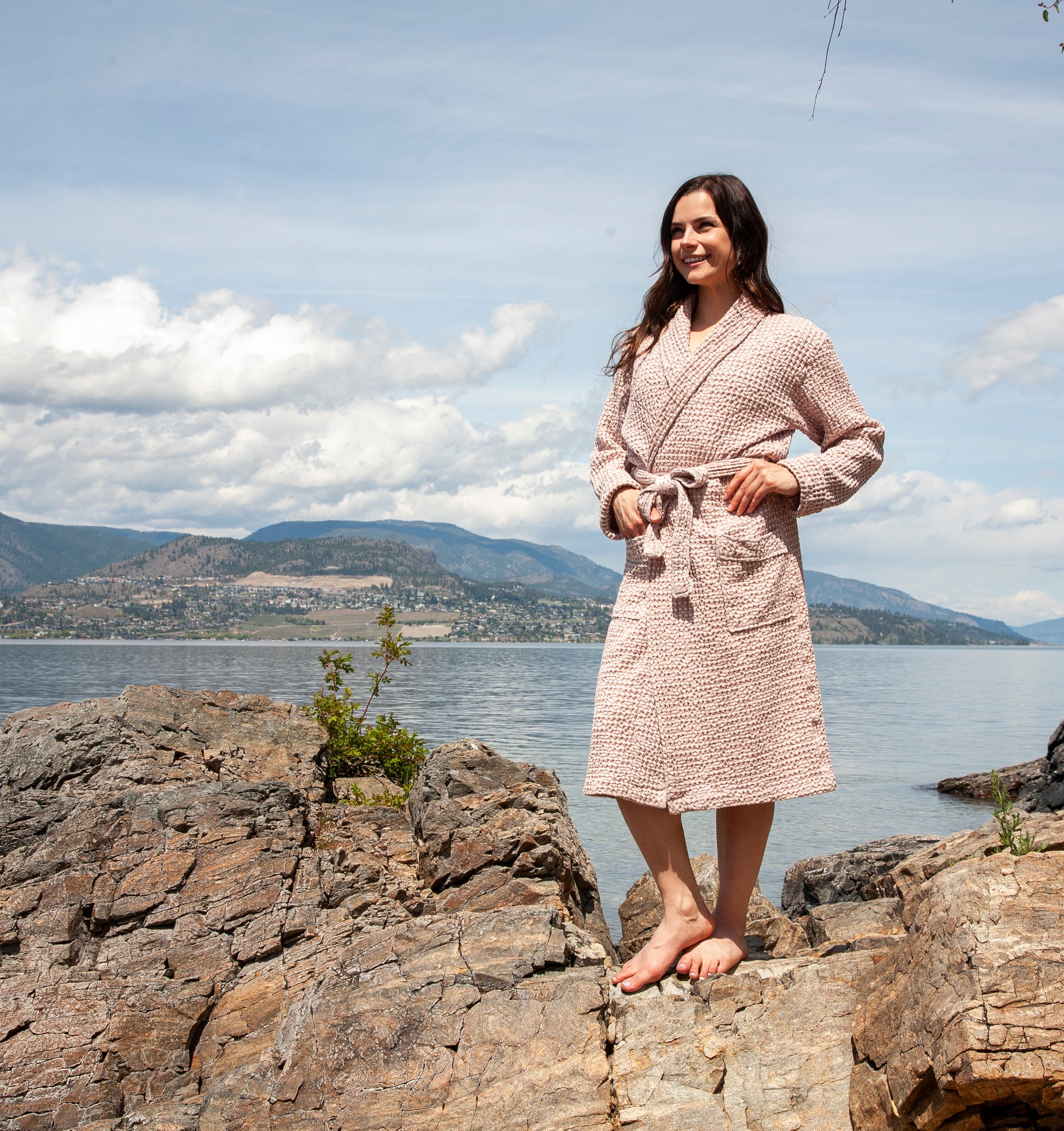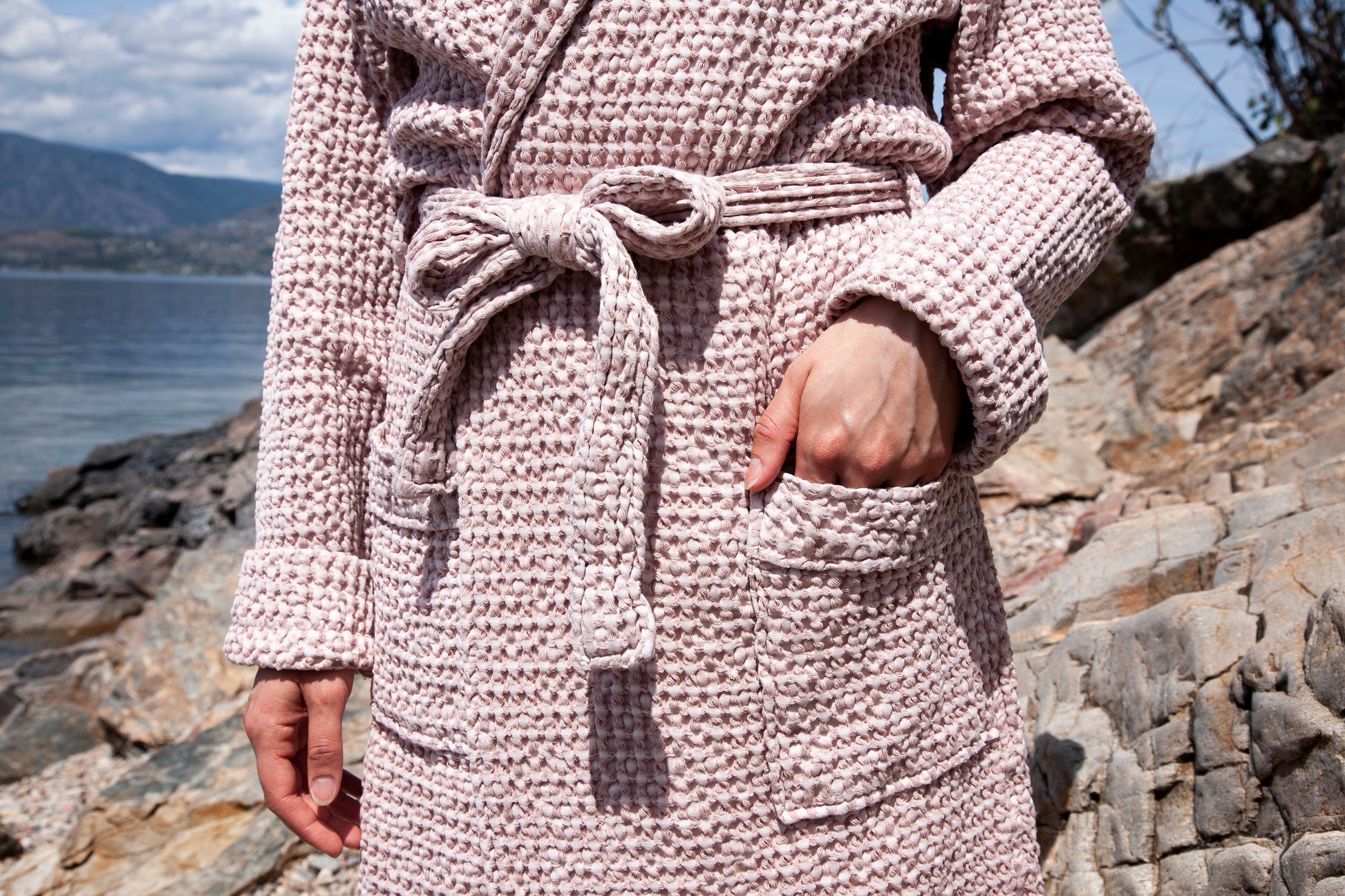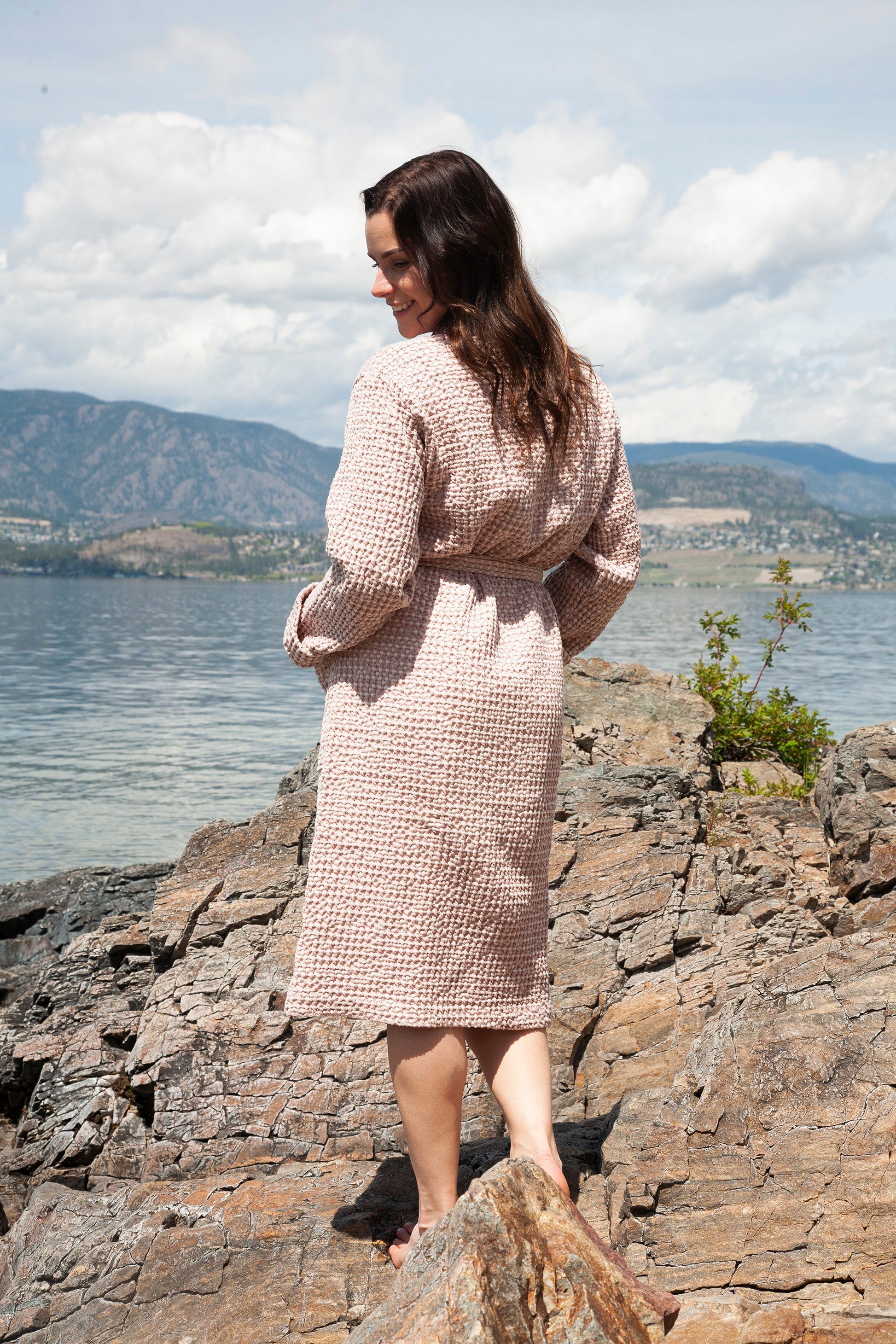 Blush Waffle Unisex Linen Bathrobe - S to 4XL