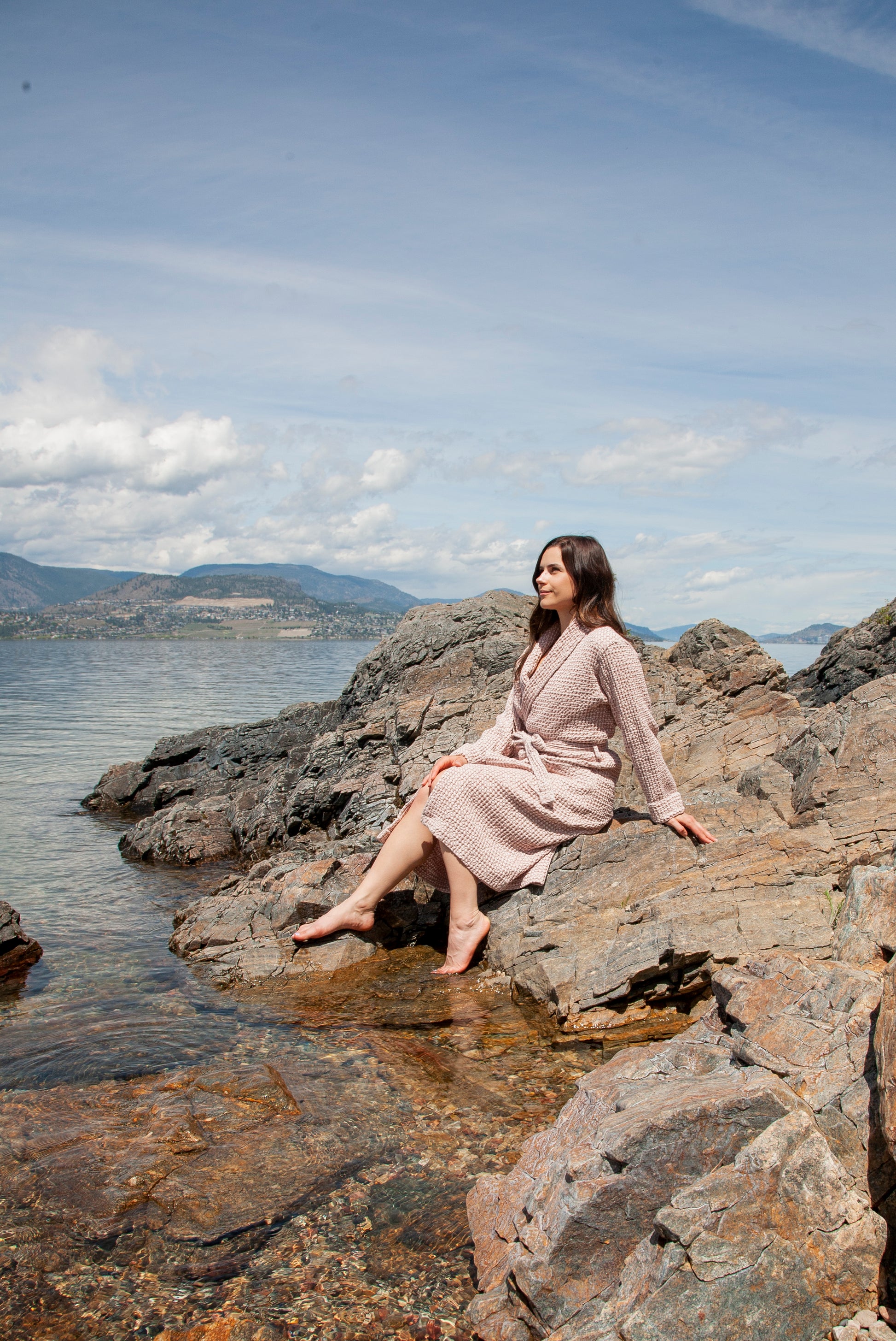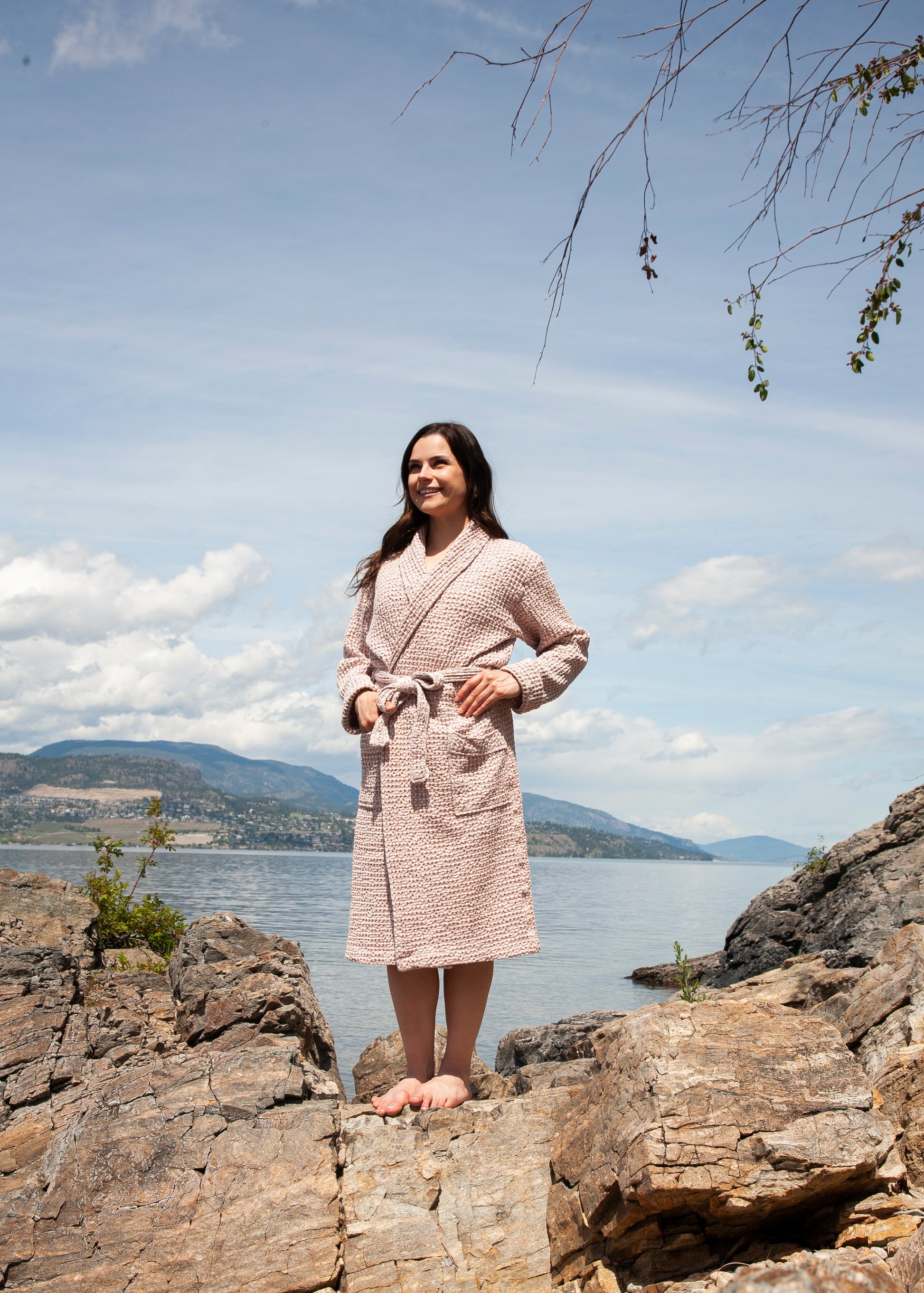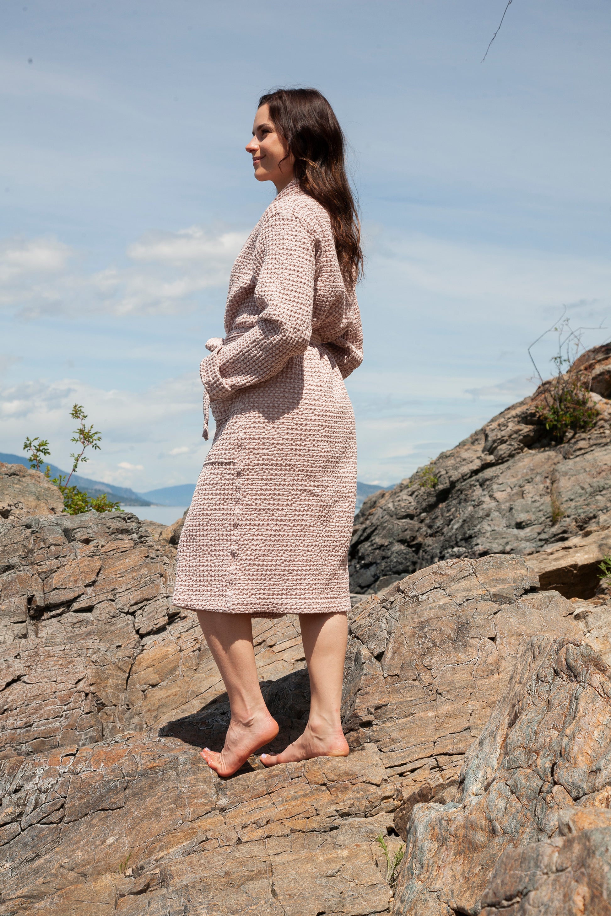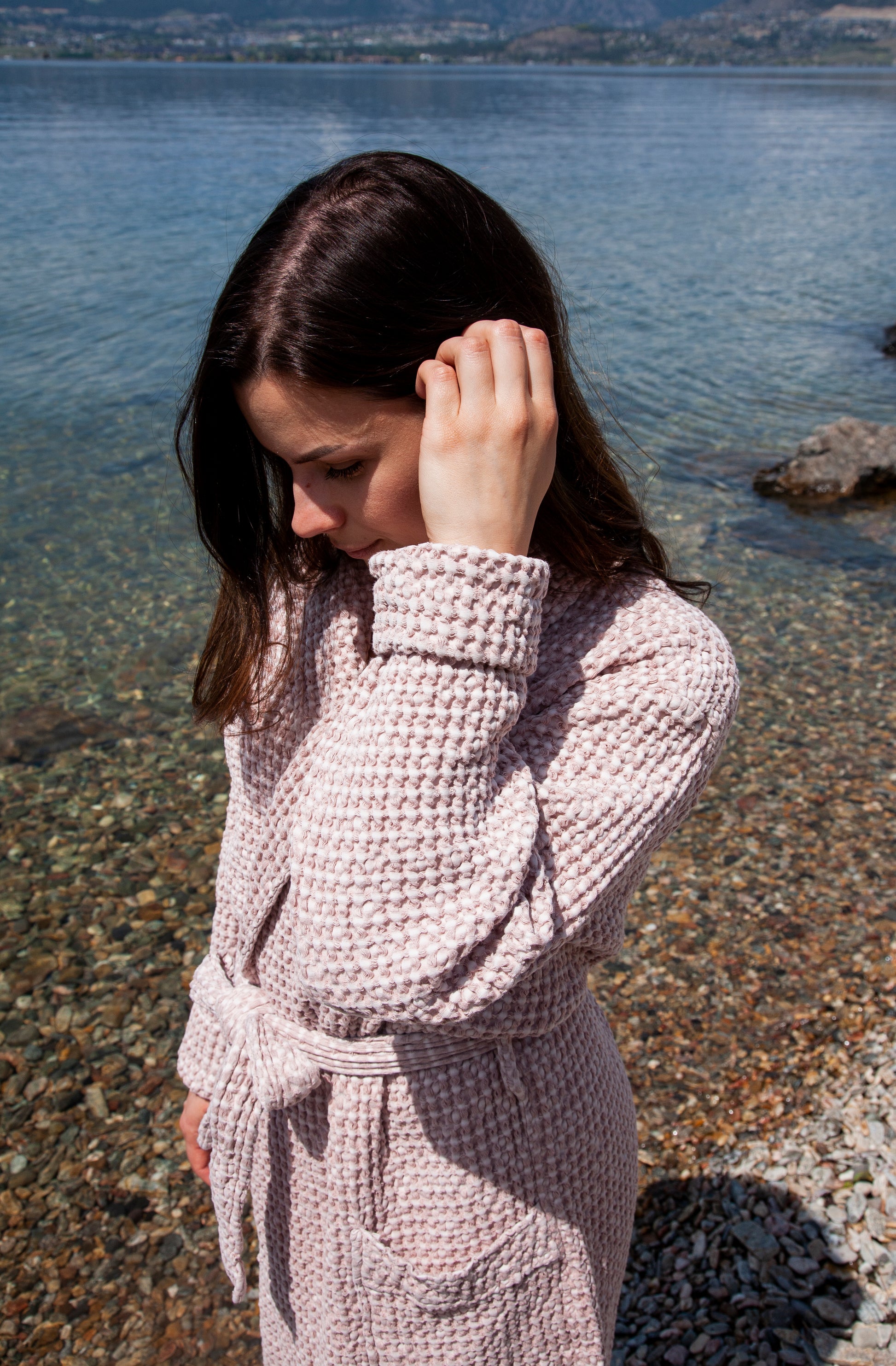Blush Waffle Unisex Linen Bathrobe - S to 4XL