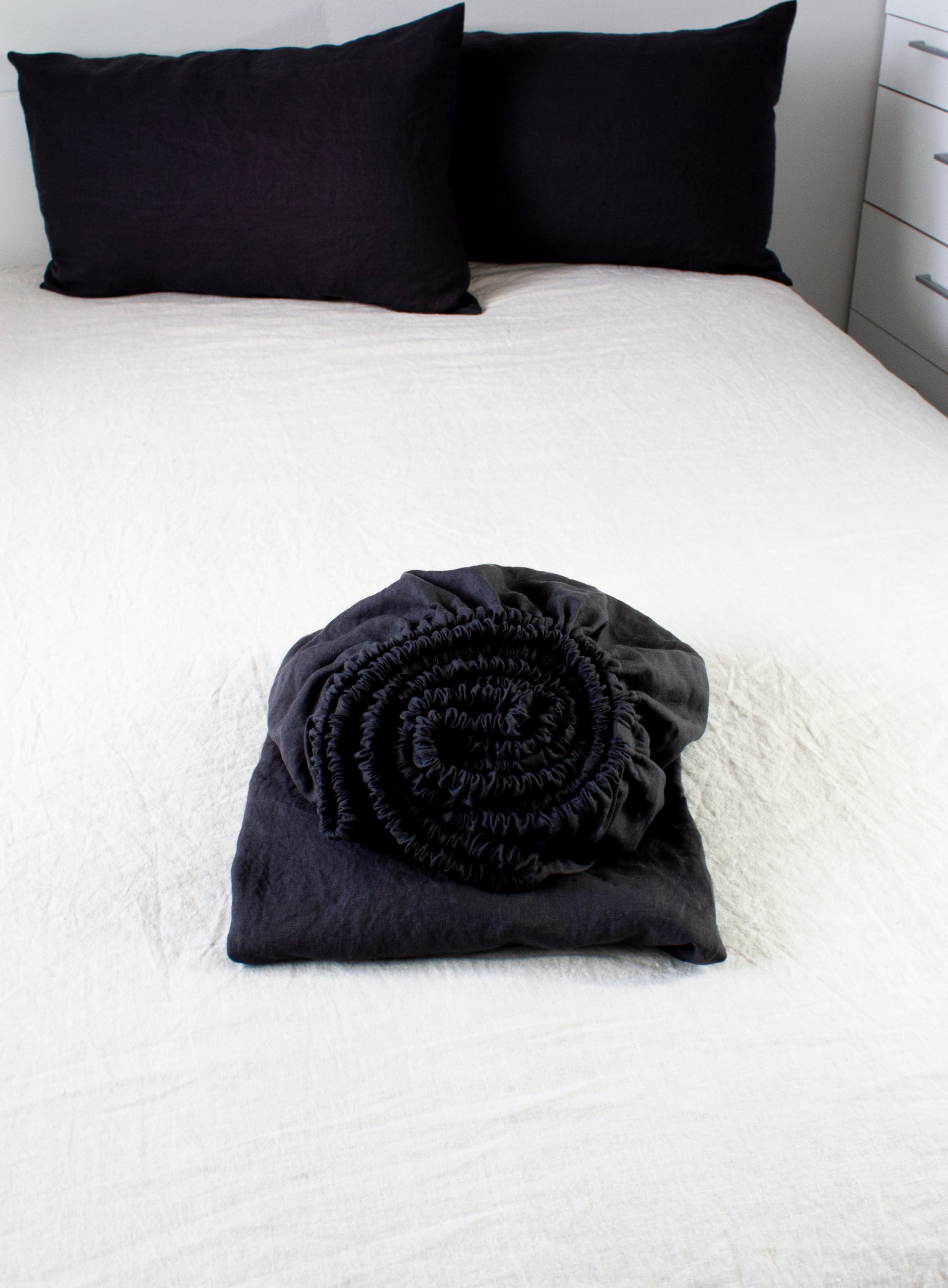 The fitted sheet a has strong elastic band around the entire perimeter. Our Linen is strong, well made and only died in eco-friendly dyes.