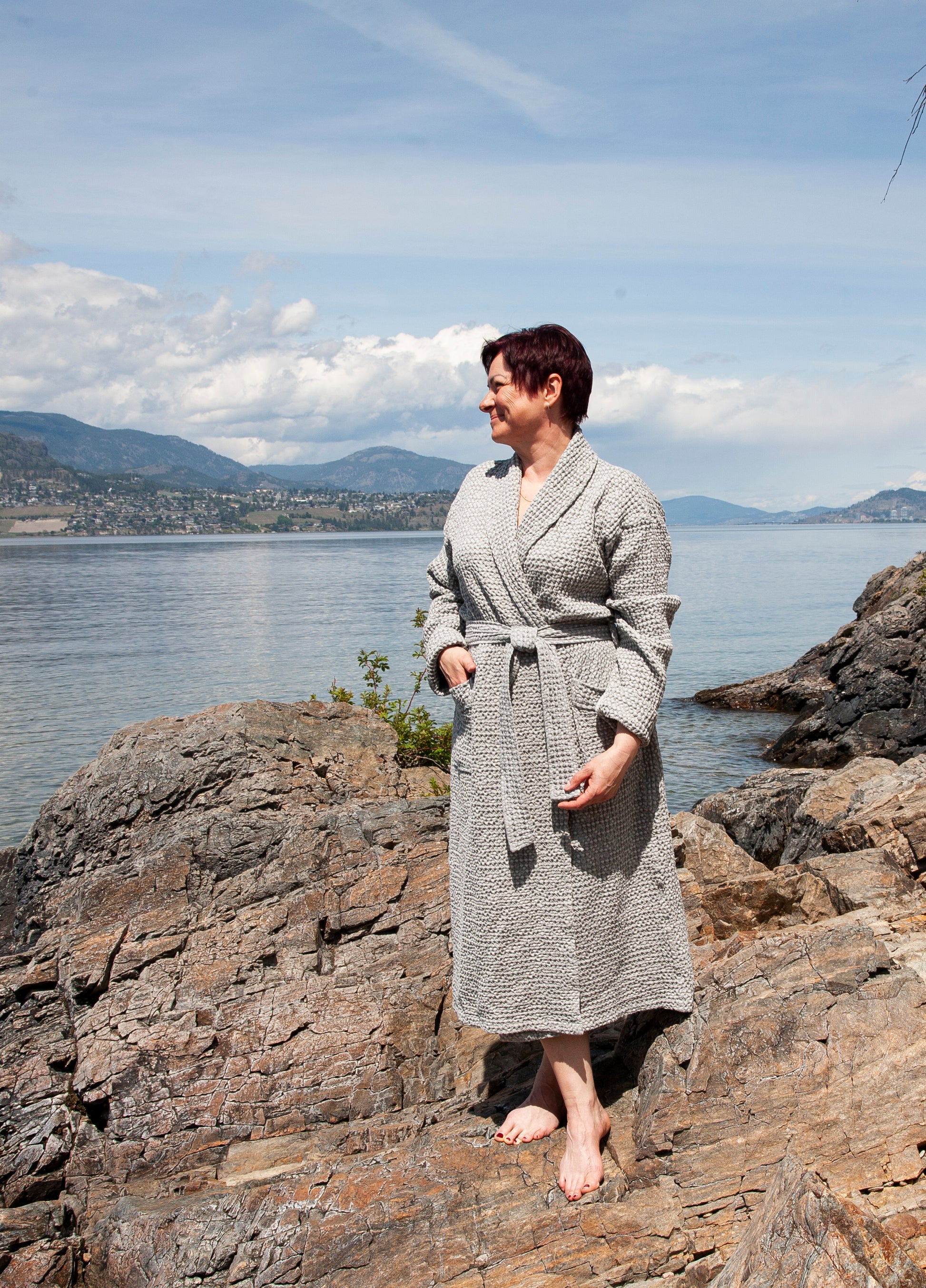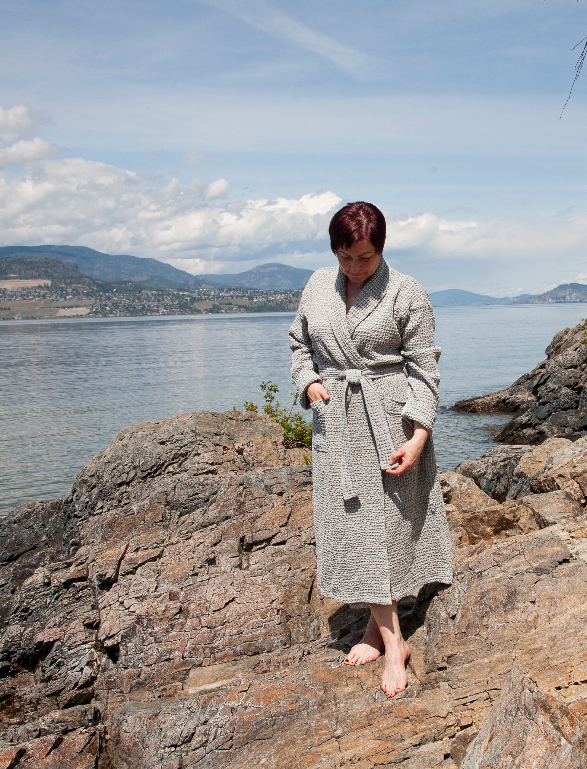 Indulge in the luxury of this one of a kind Linen/Cotton blend waffle bathrobe.