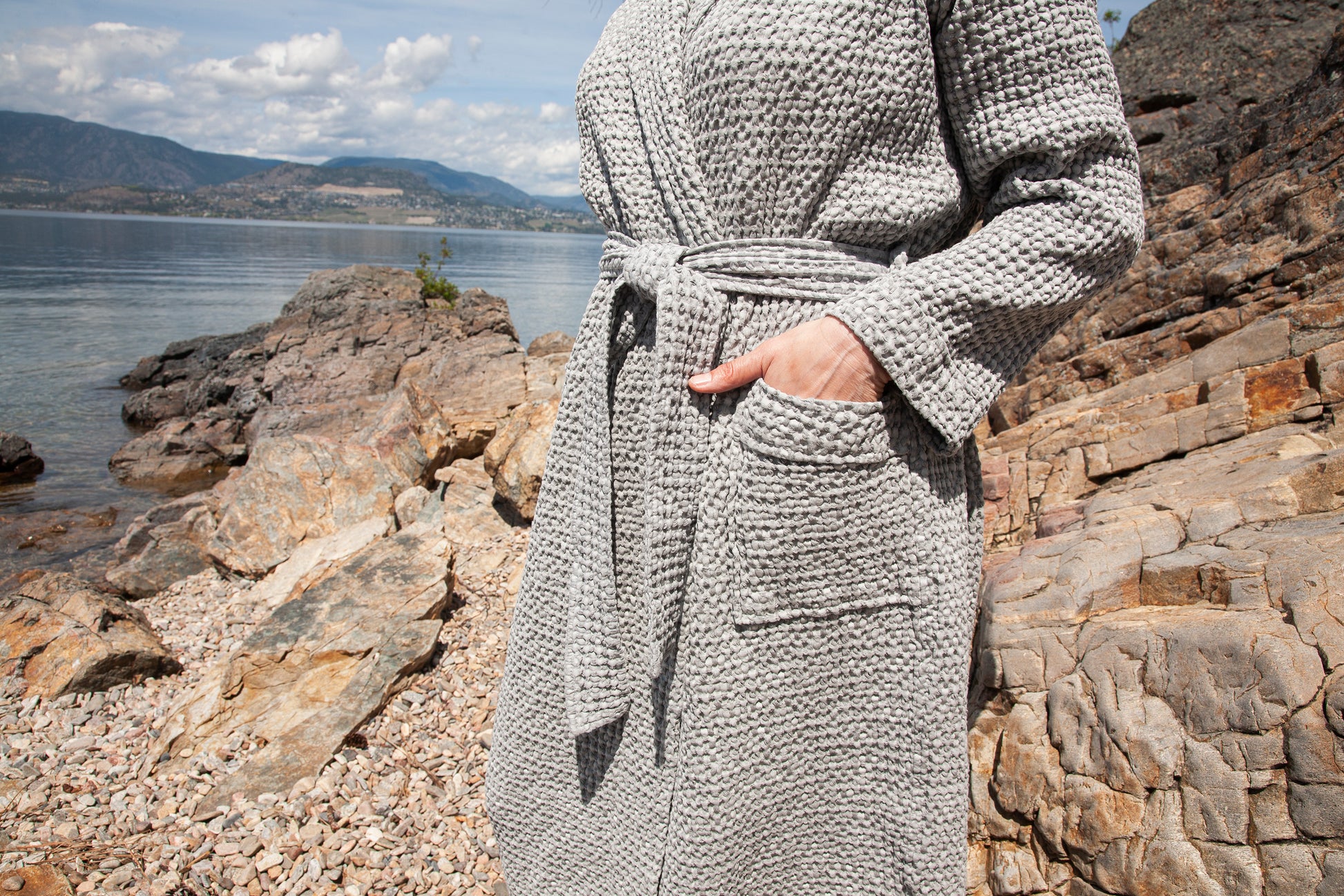 Grey Waffle Unisex Linen Bathrobe - S to 4XL
