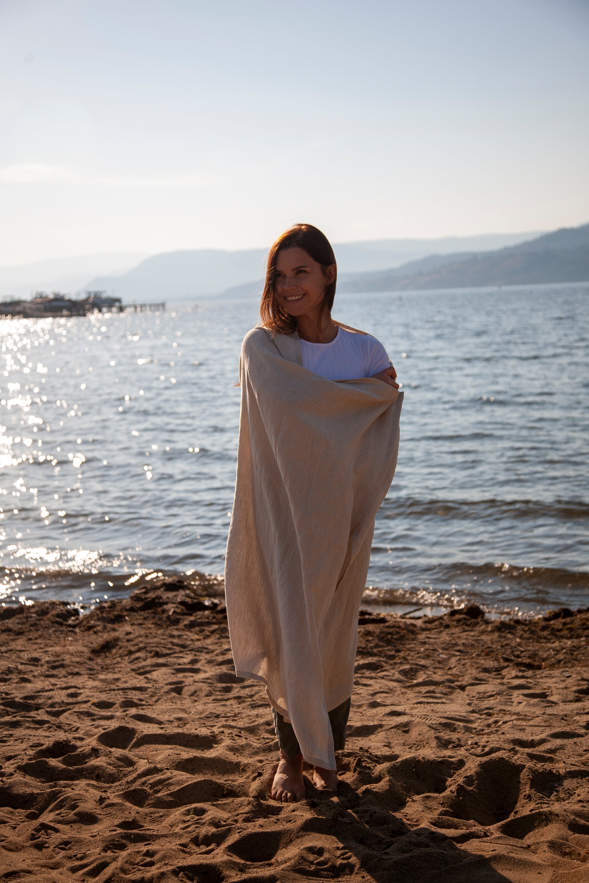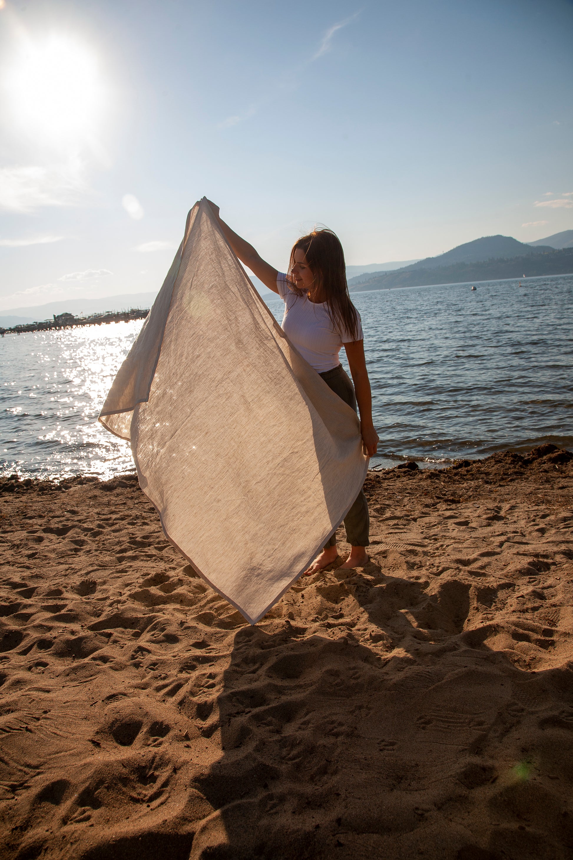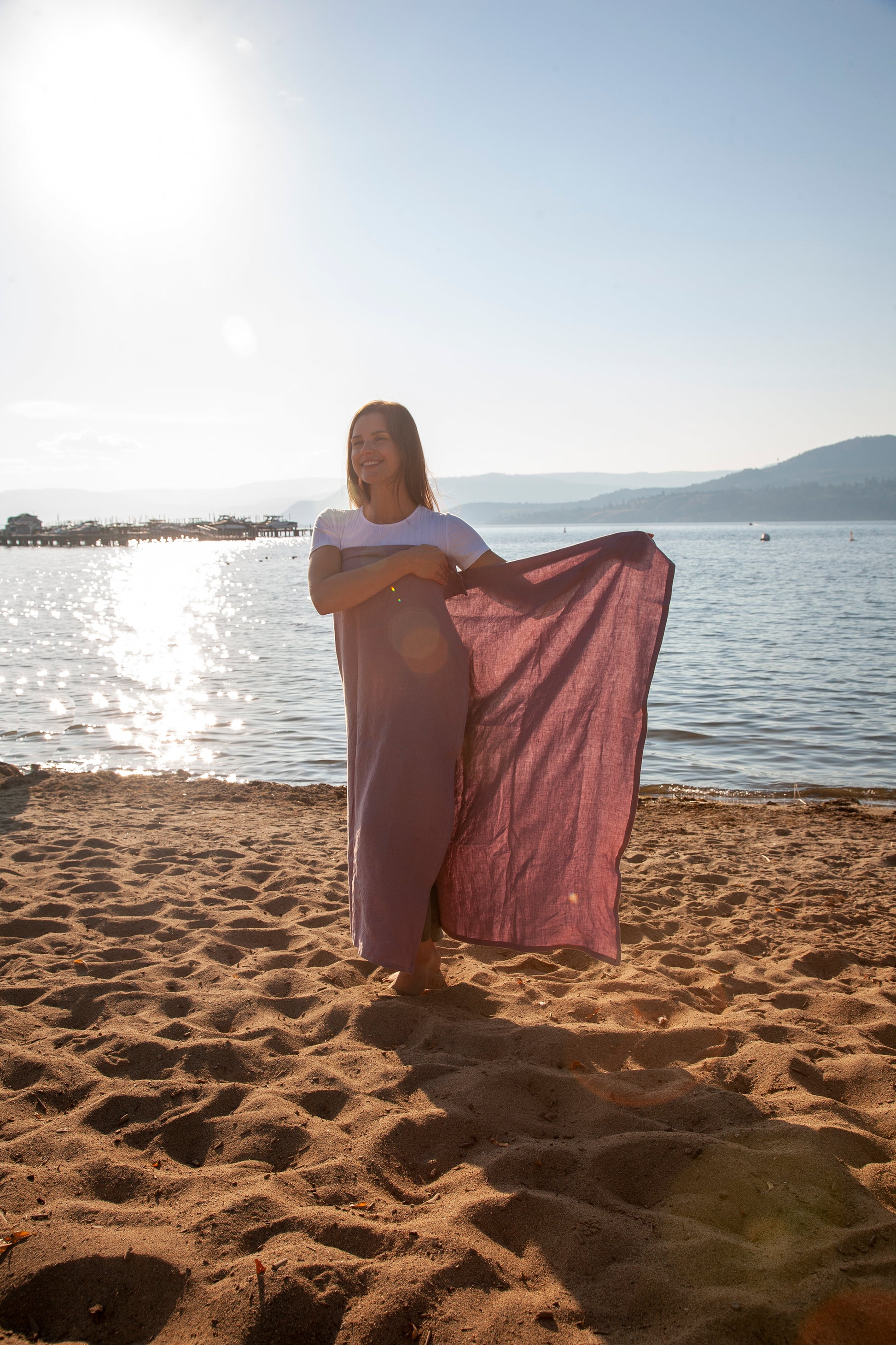 This versatile 100% Linen Bath Towel is large enough to wrap yourself up after a bath, hot sauna or just to sit on at the beach and read your favourite book. It's made of a medium weight fabric, which makes is a perfect towel to travel with due to it not being overly bulky or heavy. The towel has a hook on the shorter side to hang your towel up.