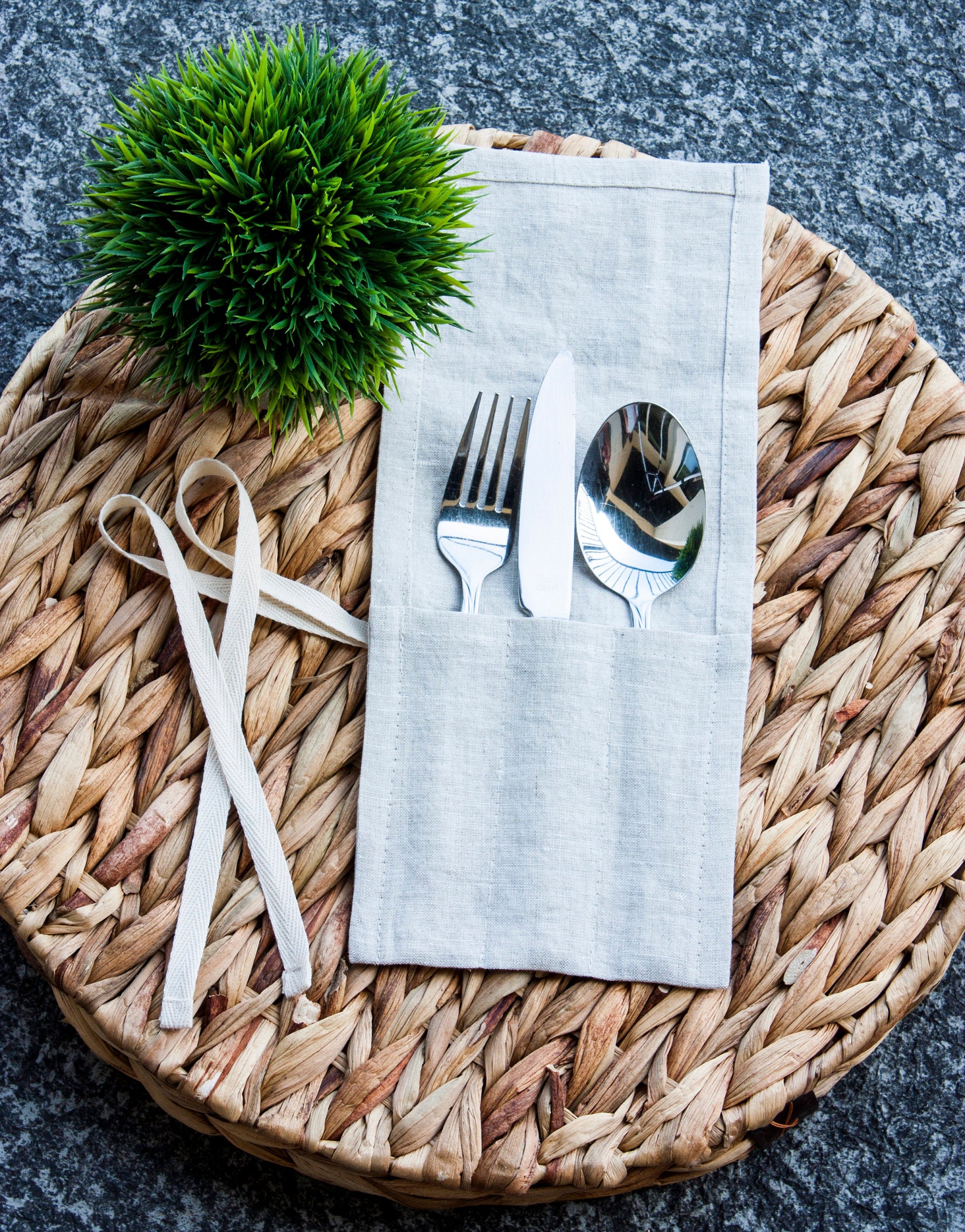 Linen Cutlery Wrap with Ties