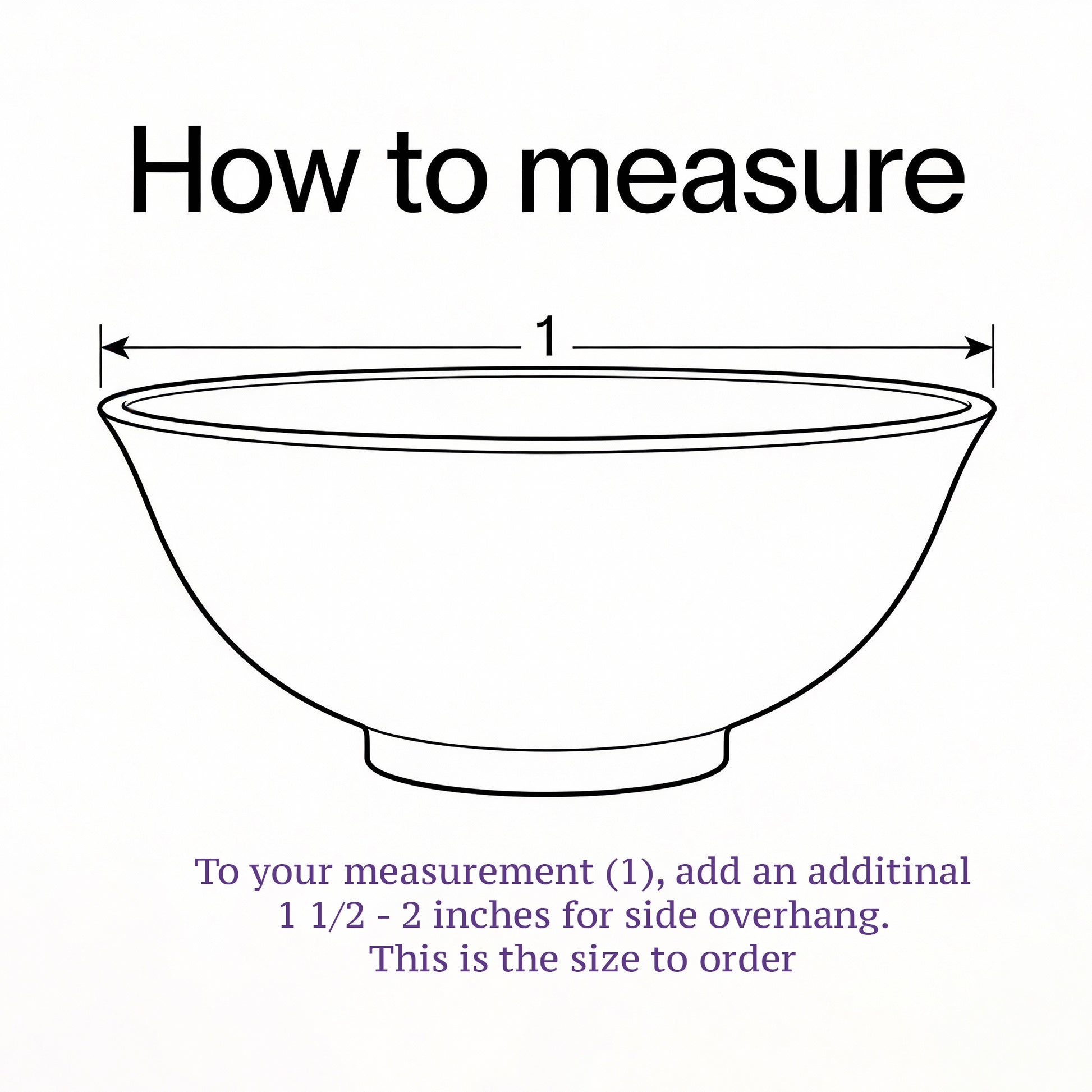 PLEASE READ BEFORE ORDERING: The size you select in the drop down is the size of the cover. Measure your bowl and add an extra 2 inches, so the cover fits comfortably.