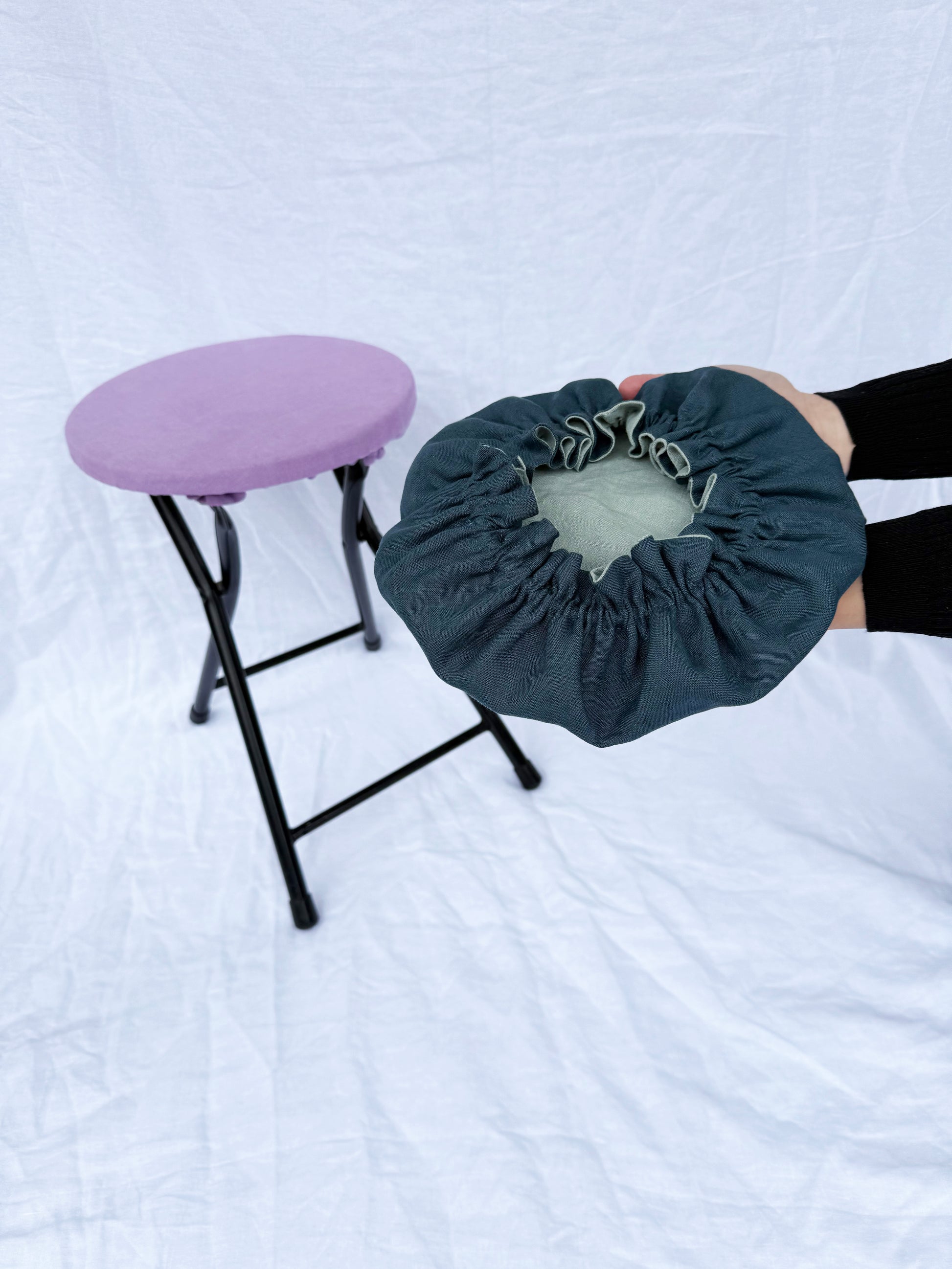 100% linen stool covers are double sided, made from two layers of fabric that are breathable and machine washable.
