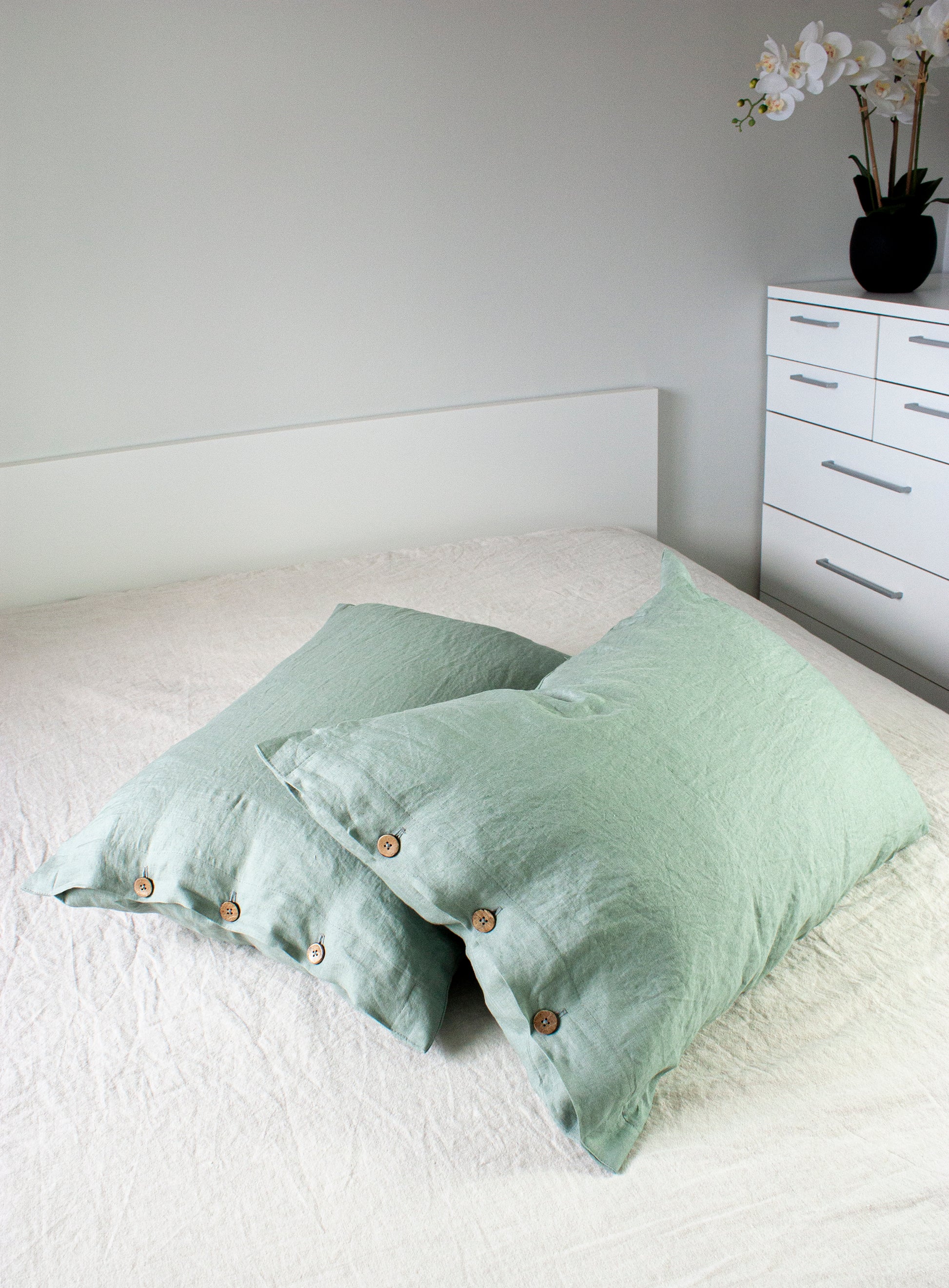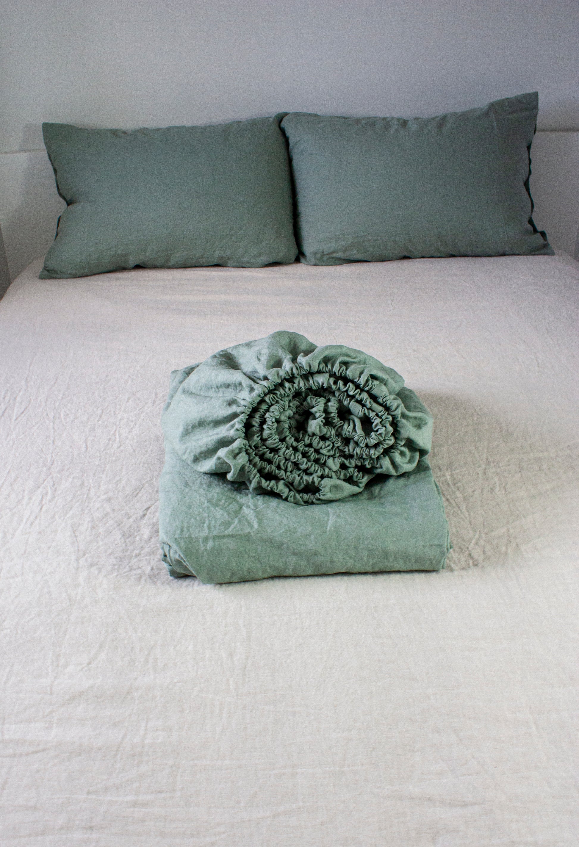 The linen fitted sheet has a strong elastic band around the entire perimeter. The linen flat sheet is perfect to stay cool during the winter, and combined with your duvet, it keeps you extra warm in the winter. The linen side closure envelope pillow cases, make for the most comfortable sleep.