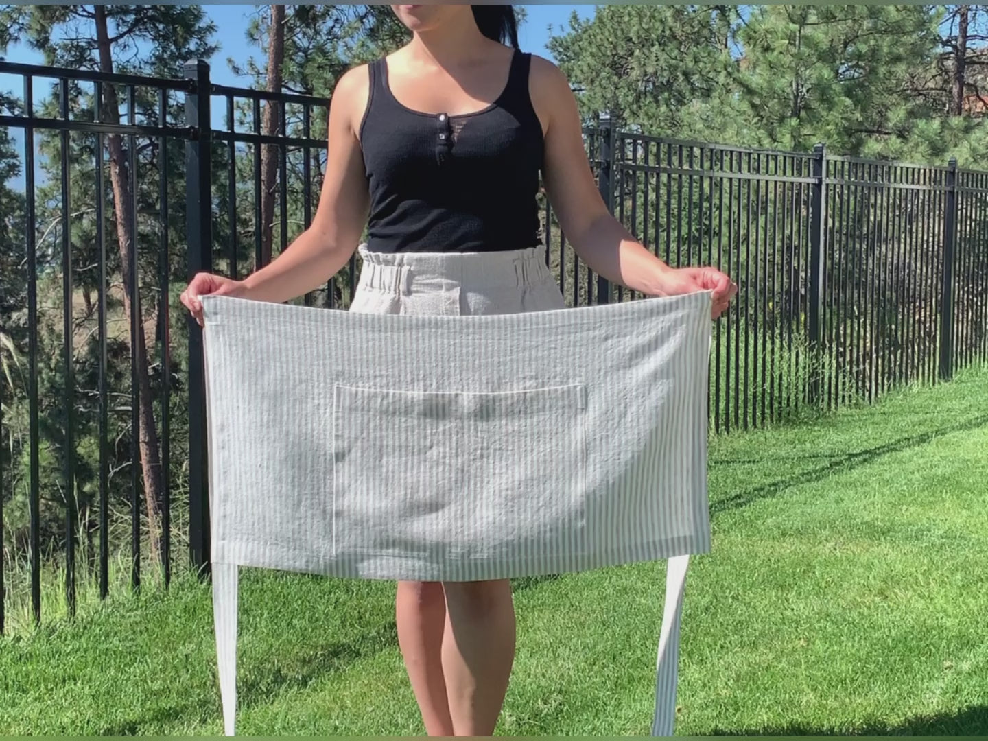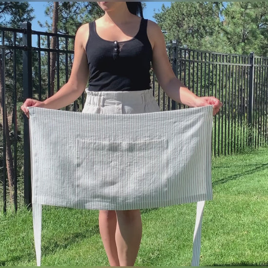 Linen Half Apron Carefully hand sewn in Canada from high-quality European linen. This apron is perfect for cooking, gardening, crafting or waitressing. Durable, and easy to care for, the half apron wraps around comfortably around the waist with two large pockets to hold your utensils. Suitable for women and men.