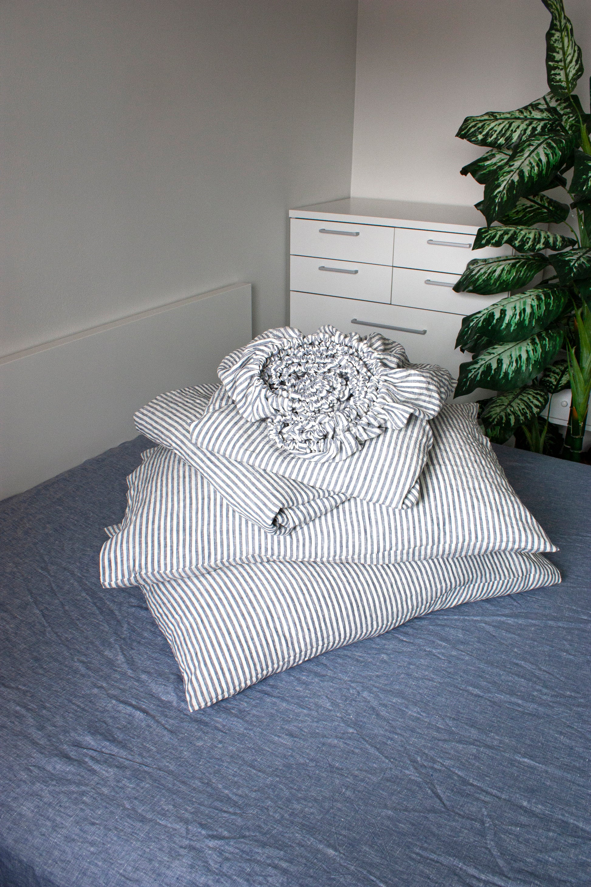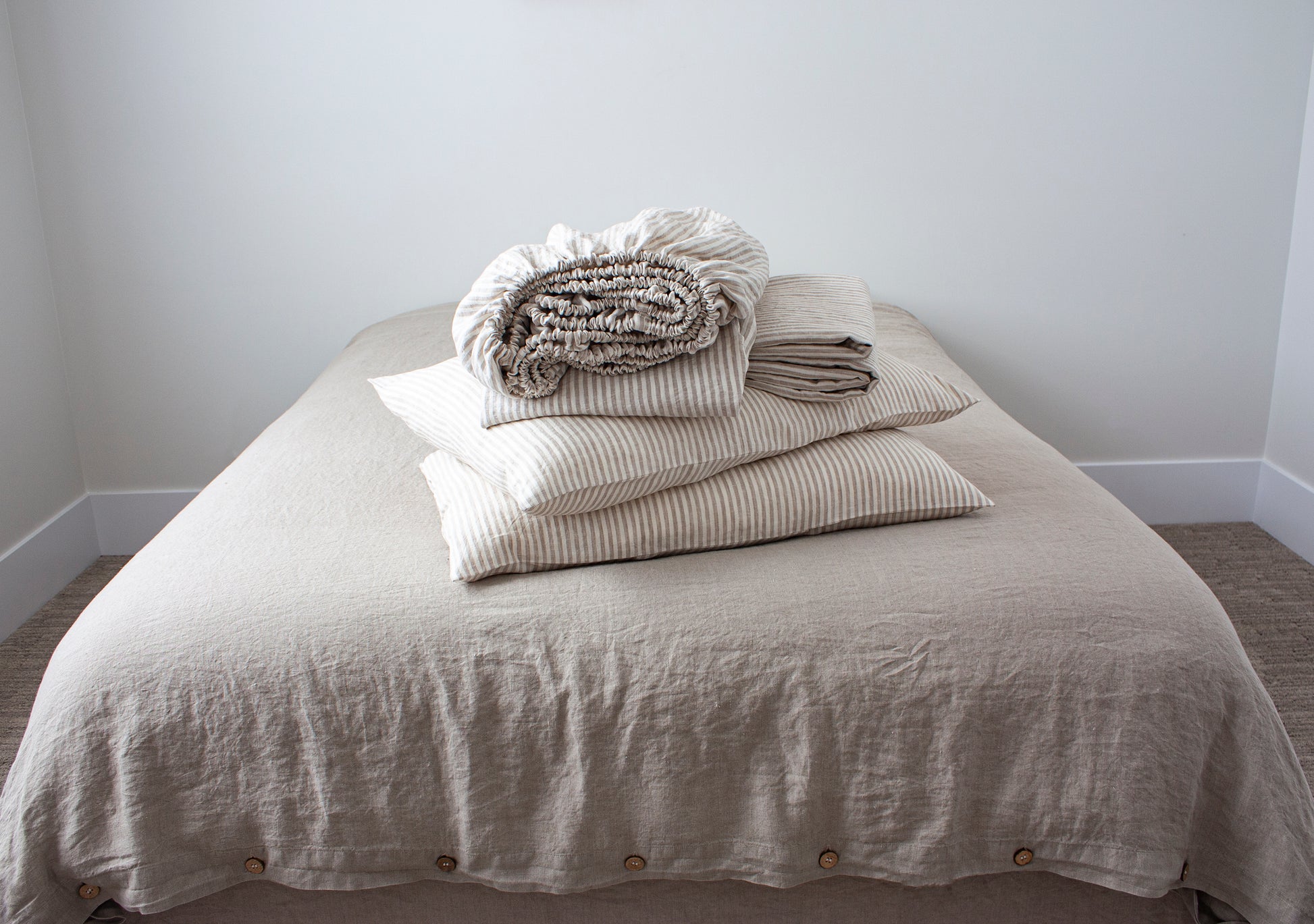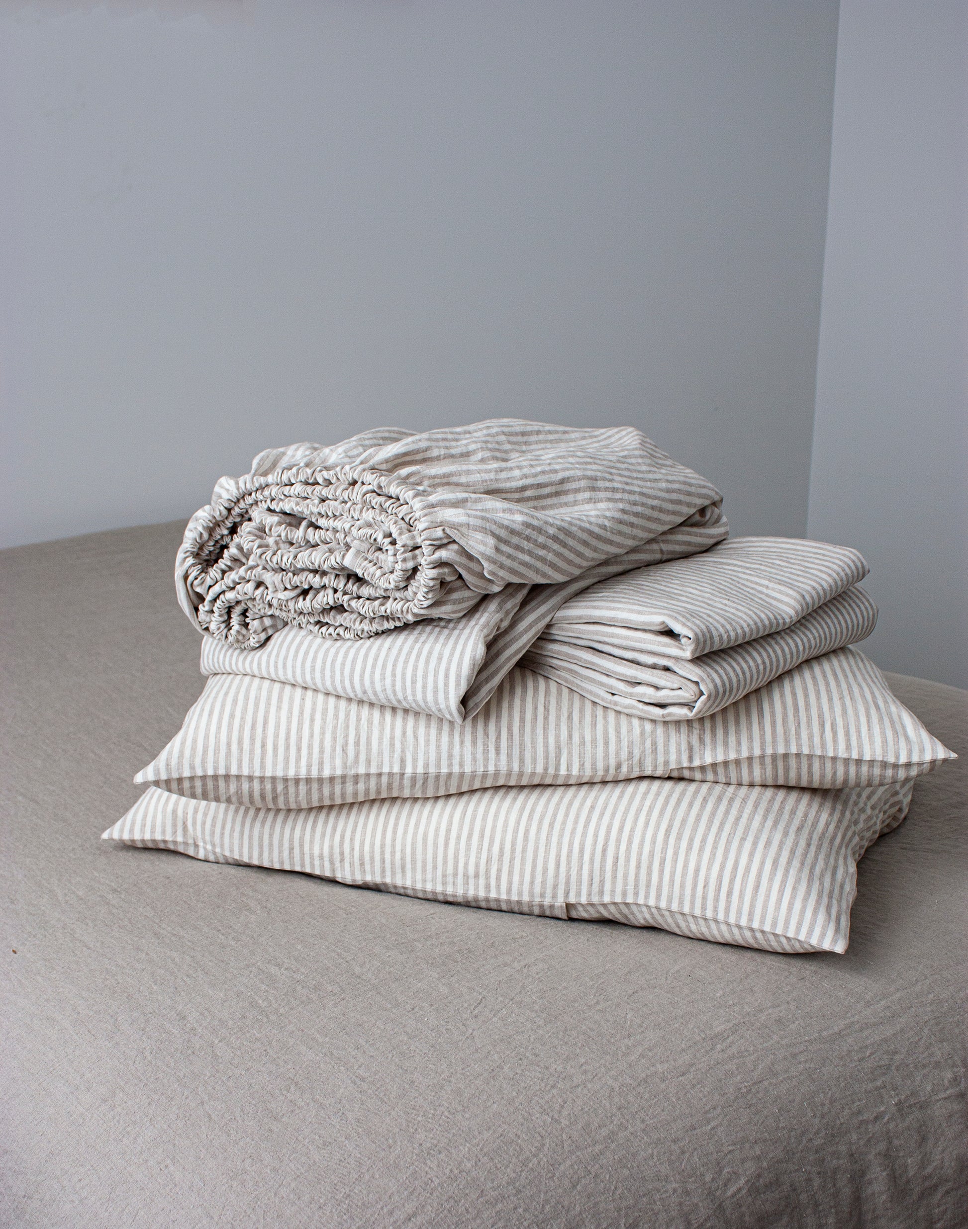 The linen fitted sheet has a strong elastic band around the entire perimeter. The linen flat sheet is perfect to stay cool during the winter, and combined with your duvet, it keeps you extra warm in the winter. The linen side closure envelope pillow cases, make for the most comfortable sleep.