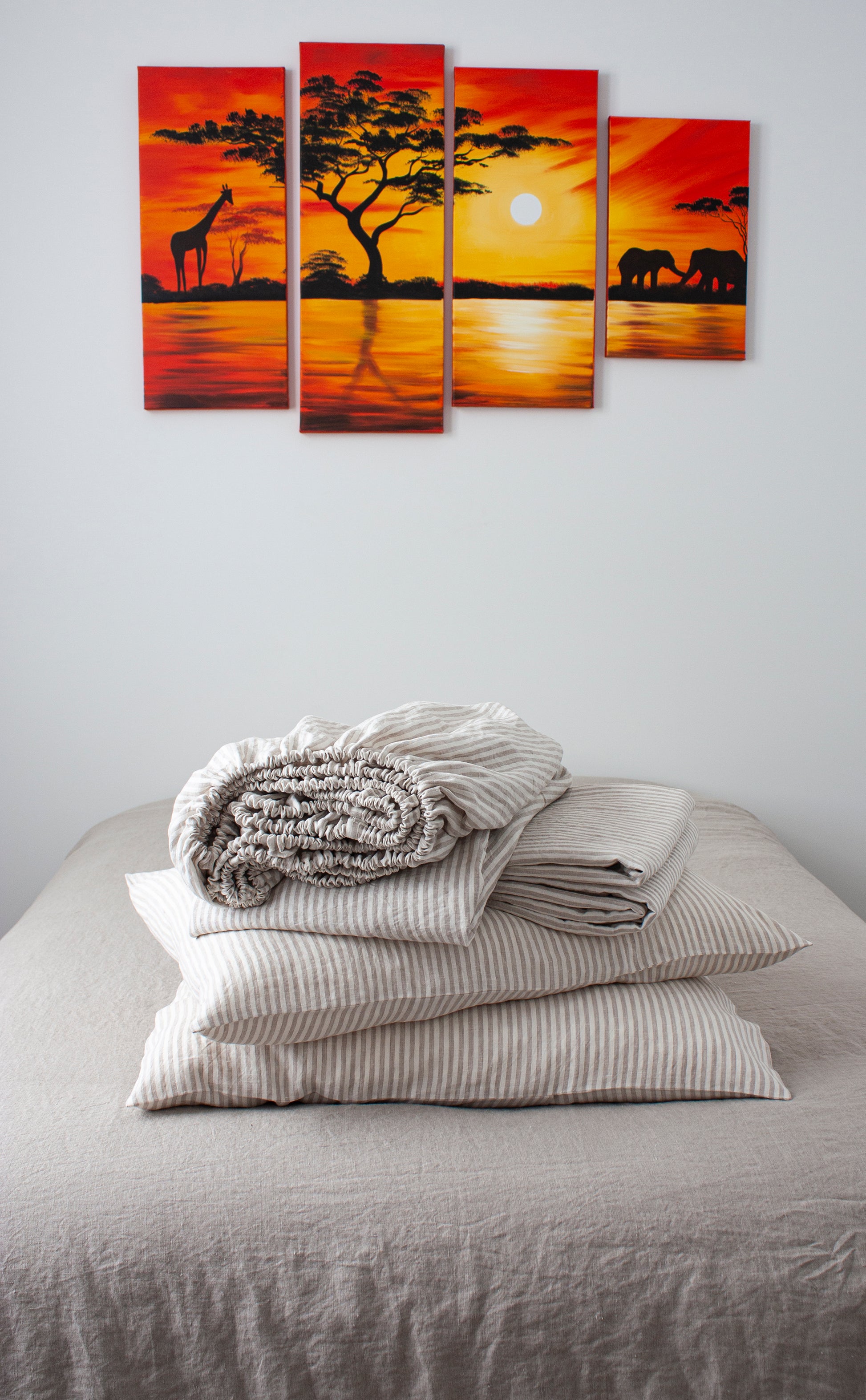 - Includes 1 linen fitted sheet, 1 linen flat sheet and 2 linen pillow cases (side envelope closure)